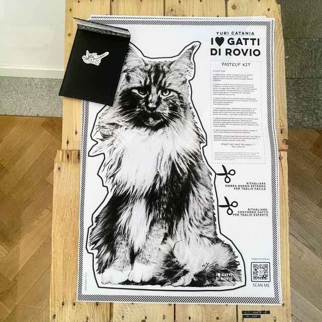 Create your own street artwork with this exclusive Gatto Morgan Paste-Up Kit, the iconic symbol from Yuri Catania's celebrated "I Gatti di Rovio" exhibition. This special kit pays tribute to one of the most beloved characters from the street art collection that captivated Rovio. Complete with everything you need: a beautifully designed template of Gatto Morgan and natural wheat starch glue. This collector's edition is now completely sold out.
