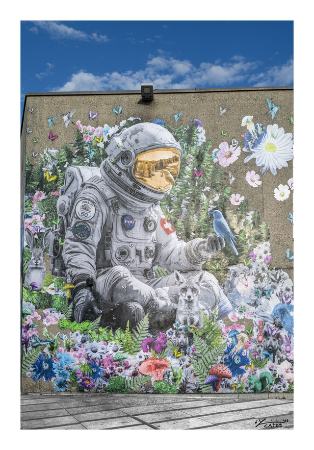 Own a piece of Lugano's street art with this limited edition print from Yuri Catania's monumental mural on Palazzo dei Congressi. Created to celebrate the 50th Anniversary of the Palace, "Astro Forest" captures the cosmic harmony between nature and space exploration. Each print is hand-signed by the artist and limited to just 50 copies.
