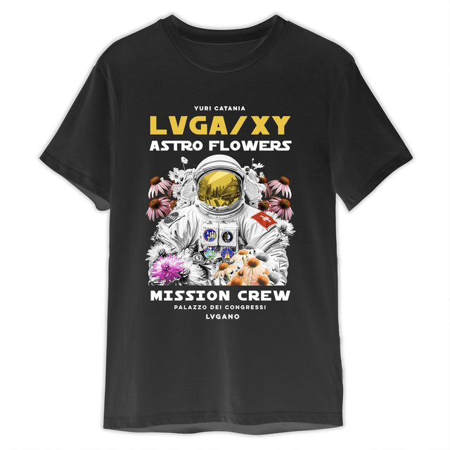 Yuri Catania LVGAXY ASTRO FLOWERS Limited Edition Men's Black Cotton T-Shirt - Front Print - Wearables Collection